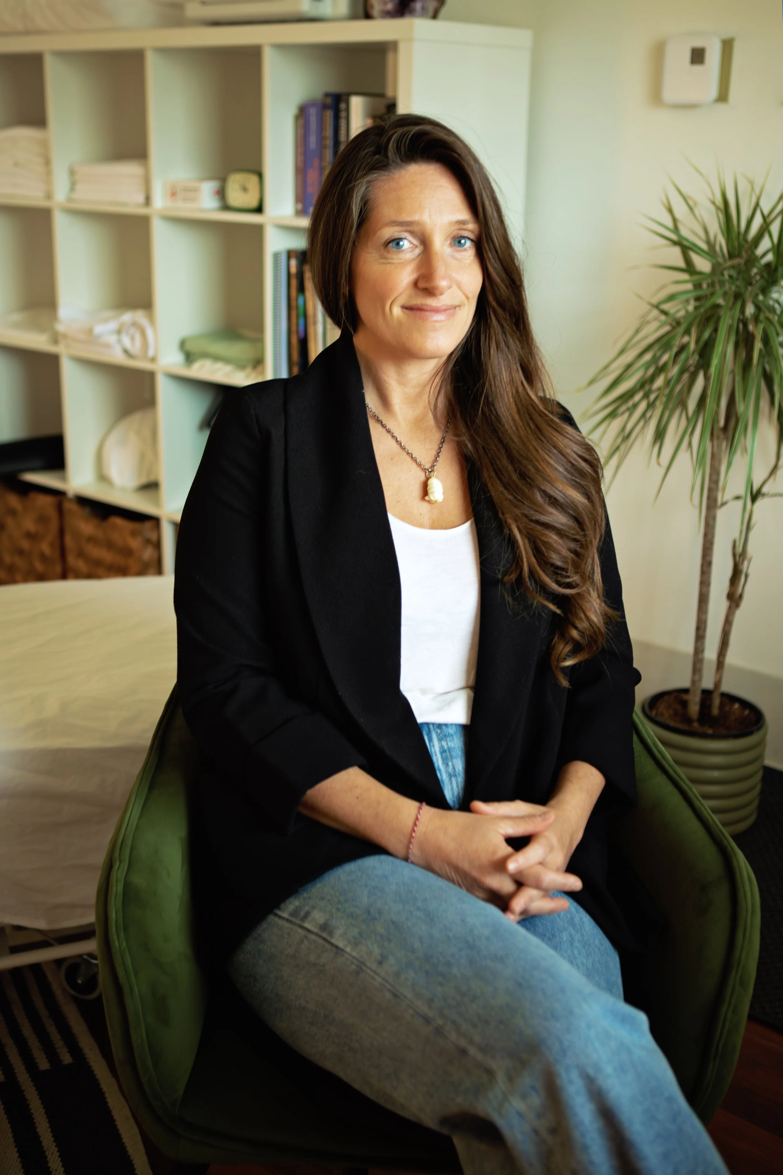 Inside her softly lit treatment room, her work is harder to define than a storefront sign might suggest.